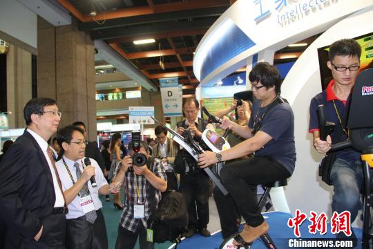 “2013台北国际发明暨技术交易展”9月26日启幕。图为演示动感游戏单车。冽玮 摄 |