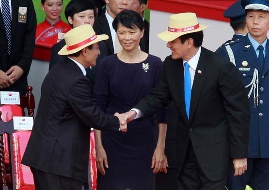 “双十”庆典大会上马英九及“立法院长”王金平两人互动成为媒体的焦点,马英九夫人周美青似乎成了两人最好的润滑剂。