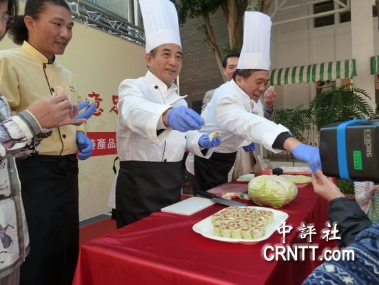 王金平穿着厨师服,把做好的高丽菜卷分给台下来宾。(中评社 刘冠廷摄) 东南网12月4日讯 据中评社报道,台湾“立法院长”王金平3日出席由嘉义县义竹乡农会在“立法院”举办的农产品行销记者会,化身大厨师亲手制作高丽菜卷,邀请现场来宾一同享用。 国民党籍“立委”翁重钧与嘉义县义竹乡农会协助农民行销,解决冬季蔬果产销失衡问题,3日在“立法院”举办行销记者会,邀请到“立法院长”王金前来。 王金平特别换上厨师服、戴上厨师帽,化身大厨师亲手制作高丽菜卷,力推义竹乡出产的高丽菜,并将制作好的菜卷,分给在场的来宾享用。 行销会上,义竹乡农会提供甘蓝菜、苦瓜、玉米凉面等多种创意料理供品尝,还有鲜甜多汁的洋香瓜、小番茄等,大家一口接一口,非常开心热闹。 |