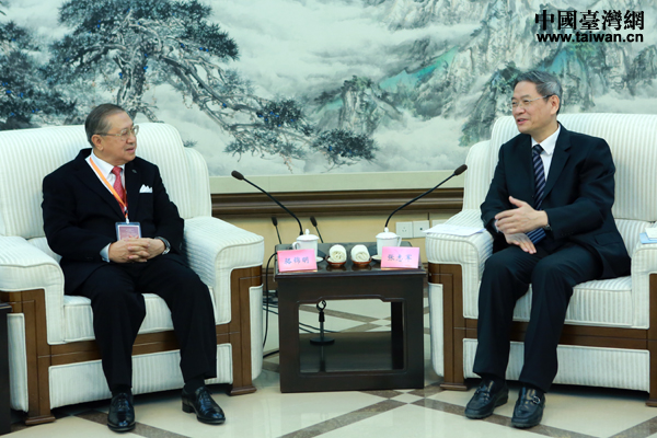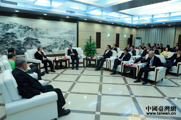 张志军会见第四届ECFA海峡两岸暨香港民间经贸合作论坛代表。(中国台湾网 于斯文 摄) |