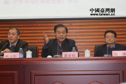 两岸教育界人士分享中华传统文化心得(中国台湾网 杨旋摄) 中国台湾网12月14日消息为响应十八大“建设优秀传统文化传承体系,弘扬中华优秀传统文化”的号召,也为了进一步促进两岸教授中华文化课程一线教师间的交流与学习,探索中华传统文化教育的课程模式,中华书局经典教育推广中心特联合各基地学校,于12月14日在京举办首届两岸高中教师中华传统文化特色活动课观摩研讨会,来自两岸名校的骨干教师也分享了他们对于“国学”的认识。 中国教育发展基金会秘书长杨春茂讲话(中国台湾网 杨旋摄) 2013年秋季新学期开始,中华书局自我国台湾地区康熹出版社《中华文化基本教材》改编成的《中华文化基础教材》在大陆正式面世,本次会议便邀请了两岸国学界、教育界的专家学者,全国部分知名高中校长和语文骨干教师,共同围绕高中阶段融入和落实传统文化教育的教学体系设计、教材选择、教学安排等进行深入的研讨。 中华书局的副总编辑冯宝志表示,《中华文化基础教材》的出版是依据在学校应开展国学教育的需要而生的,大陆还应该建立完整的中华文化教材体系,从初中到大学都应该认真学习国学等传统文化。 参与代表认真记录(中国台湾网 杨旋摄) 而作为中国出版集团副总裁的李岩也对中华书局引进并改编台湾传统文化教材的此举给予了高度赞扬,他称此举具有时代眼光,是融入世界、走向国际的伟大行为,符合两岸心声,有利于两岸文化的进一步融合。李岩认为,文化的传承与人才的培养非朝夕可成,但坚持下去便指日可待。他更强调,此次两岸高中教师关于中华传统文化而举办的观摩研讨会,有利于促进两岸教师间的直接交流,而中华传统文化的复兴就在于“人”的宣扬,他坚信在两岸教育界人士的共同努力之下,传授中华文化的老师会越来越多。 台湾优秀教师代表分享国学对台生影响(中国台湾网 杨旋摄) 同时,来自台湾的优秀教师代表也分享了她们对于国学的认识,以及台湾学生对其的学习感受。来自台湾北一的女教师易理玉激动地表示,初次接触《论语》便感觉其好似在自己的骨血中涌动,孔子的高远深虑让她钦佩,而她在成为老师之后也试图用平实生动的语境,让学生贴近孔子和儒家思想,教育学生可以透过《论语》去看待生命,她还强调在新时代下感受《论语》会有新的面貌。 台湾中山女中的教师庄溎芳则说,她的学生都觉得传统文化的篇章对他们的人生有积极的意义,能从中感受到很多正能量的知识。她还信心十足地表示,两岸在教育、文化等方面的良性竞争与交流,必会对传统教育有辉煌的影响。 台湾政治大学名誉教授、《中华文化基本教材》总审定董金裕。(中国台湾网 杨旋 摄) 最后,大陆国学教育专家代表、清华大学教育研究院教授王晓阳,从“高考”开始重语文、轻外文的改革说起,表示这一举措是大陆教育形式转变的一种进步,此举更有利于国学等传统文化的学习与传承。同时,他也对引进改编而成的《中华文化基础教材》给予了肯定,尤其是教材中“为学”、“为人”主题的设定展开,有利于学生、家长和老师的学习和思考,也将理论与现实很好地结合起来。而两岸同步学习传统文化的举动,不仅印证了两岸“同根同源”的本质,也更利于“中华复兴”这一中国梦的实现。(中国台湾网记者 杨旋)