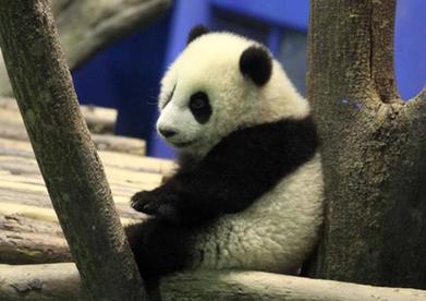 熊猫宝宝圆仔“会见”媒体 现场与妈妈零互动 |