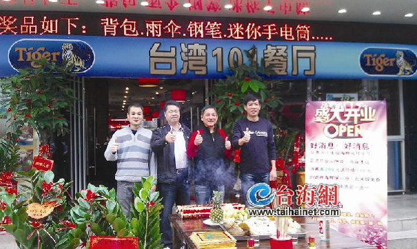 东南网1月9日讯(海峡导报记者 杨思萍 叶鹏 文/图)常常听去台湾工作回来的朋友回忆在台北的生活,其中“百元(新台币)快炒”是出现频率最高的词汇之一。一天忙碌完后,约上三五好友,随意找间街头巷尾的快炒店,点几个小菜,喝两瓶啤酒,仿佛是极其惬意的事。 昨天,台湾“百元快炒”正式跨海进军厦门,“百元快炒”店的发明者陈易晋在厦门开了一家叫“台湾101”的生猛活海鲜店,招牌上就标明了,20元人民币起吃遍店内平价各式快炒。 聊天聊来的好点子 昨日,“台湾101”正式开业。店面坐落于火车站夏商大厦旁,乍一看挺有海鲜大排档的风格,但仿古的桌椅、大红的灯笼,又处处透露着台湾人精致的饮食思维。 老板陈易晋,是台北人,在餐饮界摸爬滚打了30多年,正是“百元快炒”店的“始作俑者”。虽然没有注册商标,也没有“专利权”,但“百元快炒教父”的称号也足够让他沾沾自喜。 陈老板告诉导报记者,大概还是陈水扁执政的时期,台湾经济就没有以前风光了,当时眼看着自家经营的海产店生意越来越差,他心里就着急了。有一次,跟几个好友聊天,大家突然说道,如果每盘菜都100元新台币,不管鲜鱼、小鲍鱼、龙虾,通通都是这个价位,薄利多销,可否刺激民众进来消费? 没想到,这个点子得到大家的认可,“一百元生猛海鲜”店一炮而红,模仿的人也越来越多。到现在,整个台湾从南到北都有这种快炒店,由于成本的提高,也增加了新台币120元、160元、200元等档次供客人选择,成为台湾一道独特美食的景观。 |