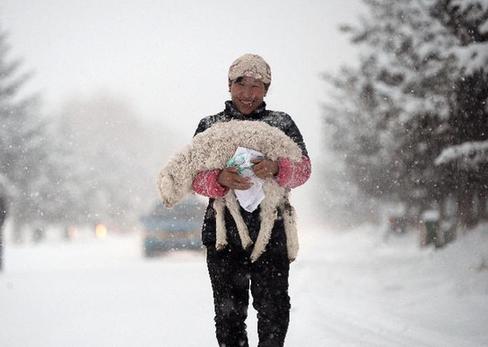 2月16日,一名来自上海的老兵后代为大家准备小吃。