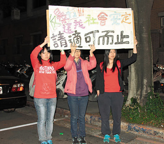 台湾母女三人深夜赴学生抗议现场 举牌呼吁自制