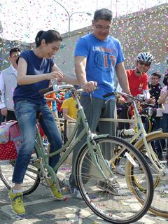 连胜文夫妇骑名牌自行车现身 掀起时尚话题(图)