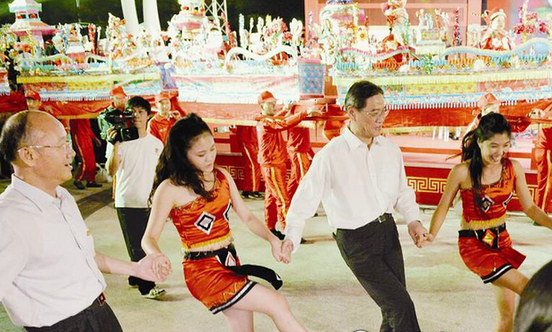 国台办主任张志军逛庙会品美食话家常 跳高山族舞蹈