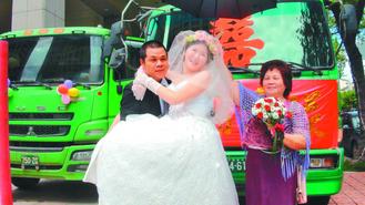 经营砂石运输事业的洪教淳(左),昨天上午以砂石车车队迎娶新娘宋贞谕。 东南网6月24日讯 据台湾媒体报道,高雄市街头昨天上午出现难得一见的砂石车迎亲队伍。经营砂石运输事业的洪教淳娶妻子,用同业以及自家共6辆砂石车的车头,当做迎亲车队,到高雄市寒轩国际饭店迎娶美娇娘。 “大家情义相挺啦!”开砂石车头的司机们,也换上喜气的红衬衫,6名司机都说是第一次开砂石车当迎亲礼车,平时砂石车司机一天的工资约有7千元到8千元新台币不等,昨天6名司机都是友情赞助。 新娘宋贞谕说很惊喜,也觉得很特别。洪教淳说,他从事砂石车运输业,以自家的车队迎亲省钱,最重要是不忘本,他连喜帖都是做成砂石车的造型。 “他很用心!”宋贞谕表示,前一天晚上,新郎才向她透露要把平日开的砂石车当做礼车,她吓了一大跳,以为她必须爬到砂石车上。不过洪教淳解释,还是会安排轿车给新娘搭,但是其余的迎亲车都用砂石车。 每部砂石车都挂上彩色气球,第一辆车还挂上大红布条,车窗贴上大大的“囍”字,在路上行进间,相当吸睛。 这对新人都住高雄,洪教淳说,两人经朋友介绍而认识,进而结婚。 |