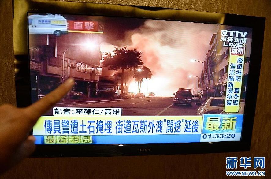 7月31日晚,高雄市前镇区多条街道陆续发生可燃气体外泄,并引发多次大爆炸,数条街道被波及,至午夜时分气爆更加严重,目前伤亡人数持续攀升。爆炸持续多次,三多路和凯旋路整条道路被炸开,发生路面塌陷、车辆遭波及翻覆、地面冒火等情况,至8月1日凌晨已有多名民众受伤送医。何俊昌摄 图片来源:新华网