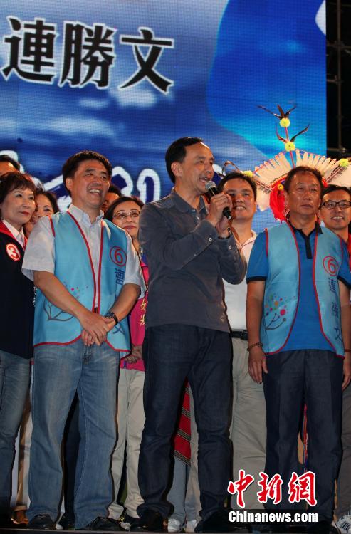 11月22日,台北市长选举候选人连胜文举行“挺到底”游行及晚会,为29日的选举寻求市民支持。台北市长郝龙斌、新北市长朱立伦、鸿海集团董事长郭台铭等各界知名人士到场,呼吁经济选民支持连胜文。中新社发刘舒凌 摄