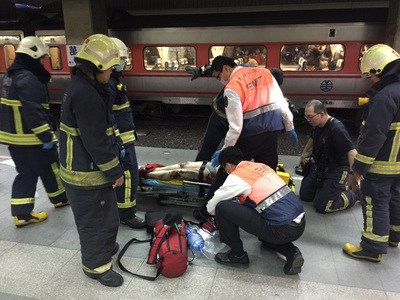 台铁142次由屏东开往七堵的自强号,4月22日晚间通过万华站时,撞到一名女子,女子送医时已无呼吸心跳。来源:台湾“中央社”