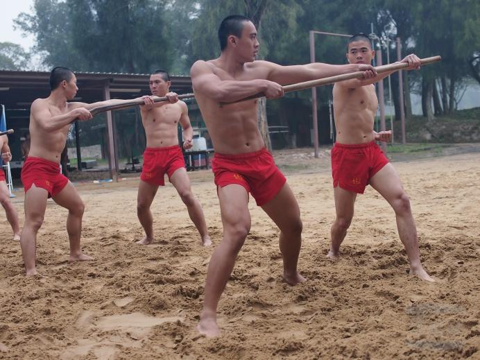 台军特种兵训练秀肌肉 光膀子只穿红内裤