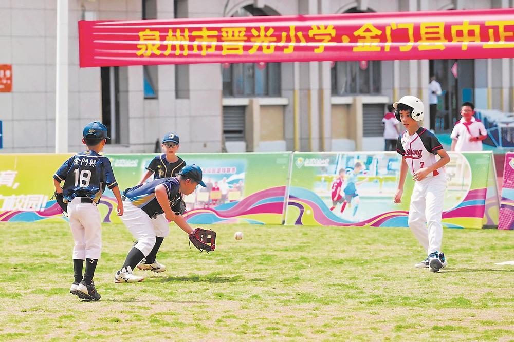 东南网10月9日讯(福建日报记者 黄琼芬 通讯员 郑玲红 摄)近日,一场充满欢声笑语的棒垒球交流赛在泉州市晋光小学北校区球场举行。来自金门县中正小学的棒球队跨海而来,与晋光小学的同学以球会友、切磋交流。在为期3天的活动中,中正小学的师生漫步晋光小学校园,参观校园,品味校园文化,在具有闽南文化特色的非遗馆体验妆糕人等非遗技艺。此外,他们还参观了开元寺、天后宫、德济门遗址、中山街等地,感受泉州深厚的历史文化底蕴。
