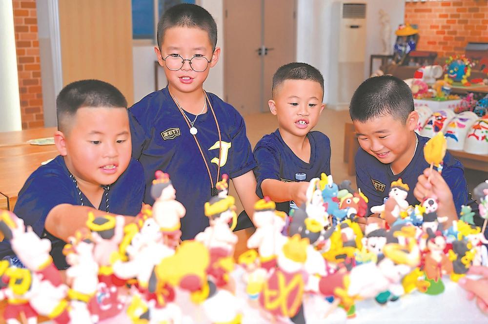 金门小学生在体验妆糕人非遗技艺。