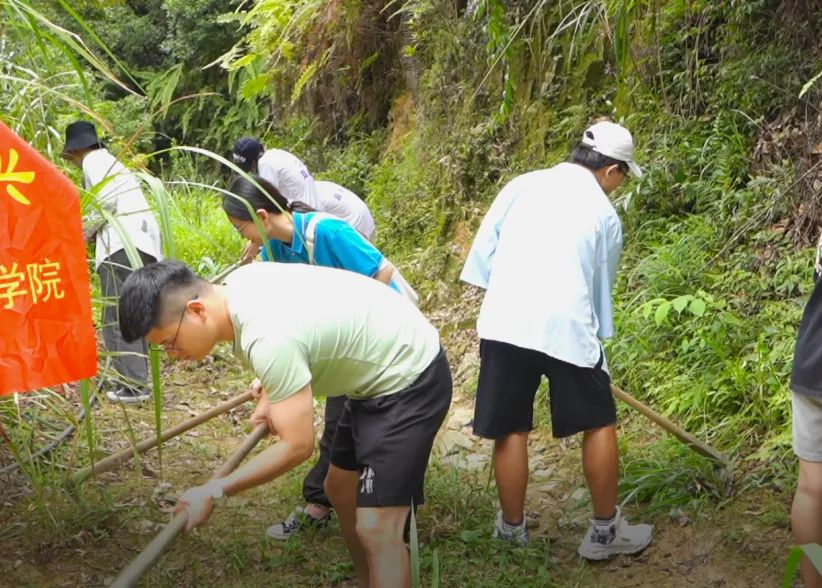 为了传承红色基因,不忘初心,感受红军精神,重温红军历程。20日中午,实践团师生在畲族村民的带领下带着农具重修红军路、重走红军路。去年今日,阳光学院大学生在这里立了“红军路”的牌子;今年今日,林秋凤队员感慨地说道我们又担负起这份责任去整修红军路,又立下了这块神圣的牌子!同时,坪水畲族村的导游邱艺英为实践团师生们讲述了红军路背后的故事。据记载,当时畲族同胞为了支援前线作战的红军战士把省吃俭用收集的物资通过这条红军源源不断的路运往前线。通过导游的讲解,柯宇隽队员深情地说我们意识到一个国家、一个民族只有精诚团结,才能自立于世界,才能谋求进步和发展。作为时代的新青年应该肩负民族复兴之大任,铸牢中华民族共同体意识,构建起国家统一和民族团结的精神,才能为实现中华民族伟大复兴而奋斗。