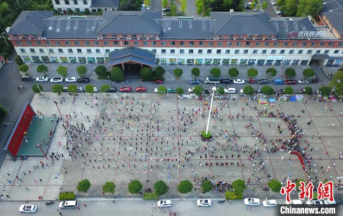 图为游客和村民在贵州桐梓县山堡村的广场上跳舞。 李甜甜 摄