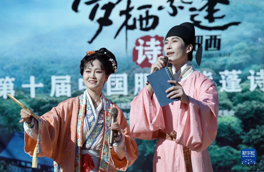 1月8日,演员在第十届中国·肥西紫蓬诗歌节线下活动上表演诗歌朗诵。
