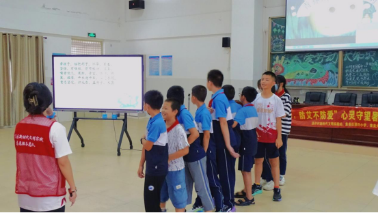 图为同学们参与关于“社会性别认知教育”活动游戏 青春红丝带,防艾不防爱 艾滋病是全球性的公共卫生问题,而青少年是社会的未来,但由于缺乏准确的信息和教育,青少年对于艾滋病存在陌生、误解和恐惧。 第三天的义务宣教中,实践队开展防艾主题教育,普及防艾知识。实践队进行知识宣讲、组织团体游戏以及防艾情景剧,寓教于乐,引导同学们在游戏中学习预防艾滋病的有关知识和预防相关技巧,让更多的同学们在愉快的氛围中积极参与课堂学习,增加自我保护和预防艾滋病的能力。 在防艾宣教中,同学们从对艾滋病的一知半解,变得理解艾滋病,并且掌握预防艾滋病的技巧。实践队小陈表示,“我们会继续进行类似的防艾宣教活动,并将扩大覆盖的范围,使更多的青少年受益。希望借助这种方式,能够在未来有效遏制艾滋病的传播,为全球青少年群体的健康和未来发展作出贡献。”