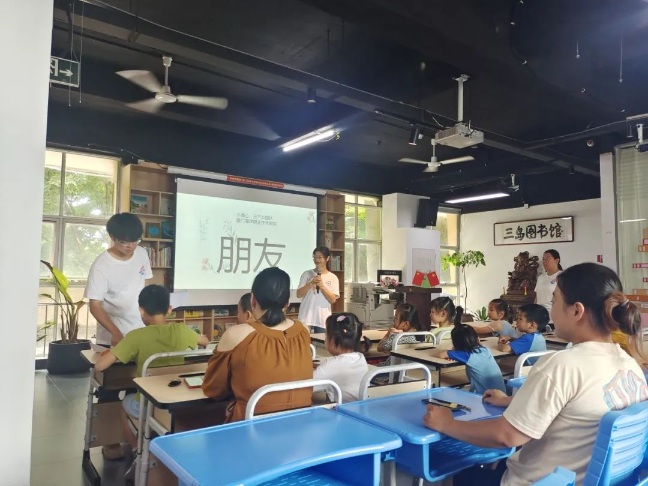 近日,厦门海洋学院心理健康咨询与教育中心的“小海心”三下乡团队奔赴大嶝岛新三岛图书馆开展青春健康心理知识三下乡,宣传青春健康知识,调查农村青春健康教育现状,并开展儿童心理健康团体辅导。 根据儿童的心理发展特性,“小海心”团队精心设计了心理健康主题活动,内容丰富,授课形式多样,课堂氛围活跃。在青春健康小讲师们的带领下,通过自我介绍让孩子们快速熟络,适应环境并参与“大风车”“你演我猜”等小游戏。