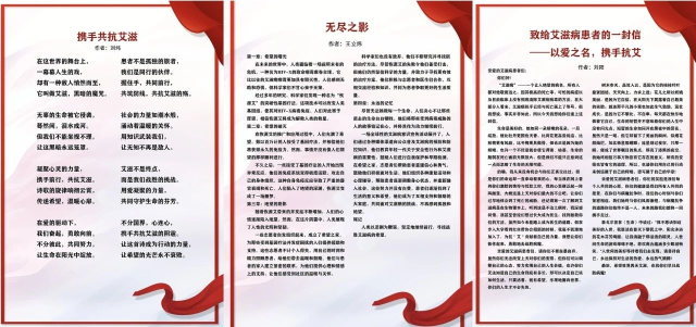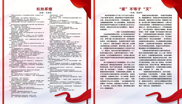 “在飞云之下以为忘了的家 在耳里说话 叫我别烦心那些痛与怕” 精彩活动 首次系列活动围绕世界艾滋病日“凝聚社会力量,合力共抗艾滋”的宣传主题展开,系列活动采取线上线下相结合的方式,通过“预防艾滋病知识竞赛”“‘艾眼看世界’公益作品征集大赛”“点滴为‘艾’,步启华园”“‘艾’心接力,传递温暖”“防艾进社区,合力守家园”等八项活动,吸引了广大学生共同参与,共同筑建无“艾”校园。 “艾”心接力