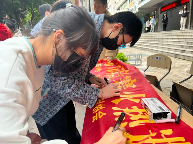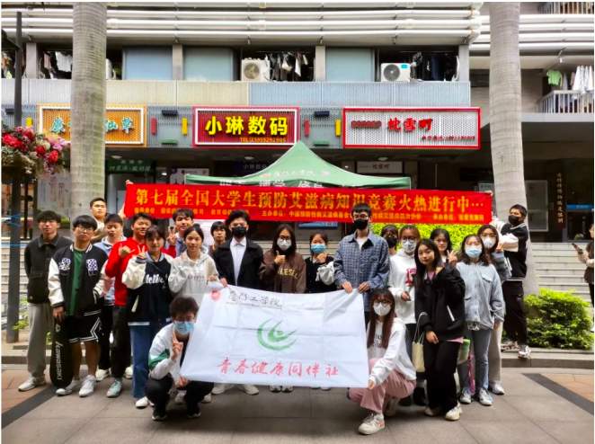 为了宣传世界艾滋病日,让同学们更好了解艾滋病,青春健康同伴社成员在商业街设立摊点进行艾滋病日宣传活动。欢迎大家积极参与活动,签名就能领取小礼品。通过世界艾滋病日的宣传,消除同学们对艾滋病的社会偏见唤起同学们对艾滋病病毒感染者和病人的理解和关爱。让同学们知道预防艾滋病很重要的一条就是每一个人要对自己的行为负责,倡导健康的生活方式。