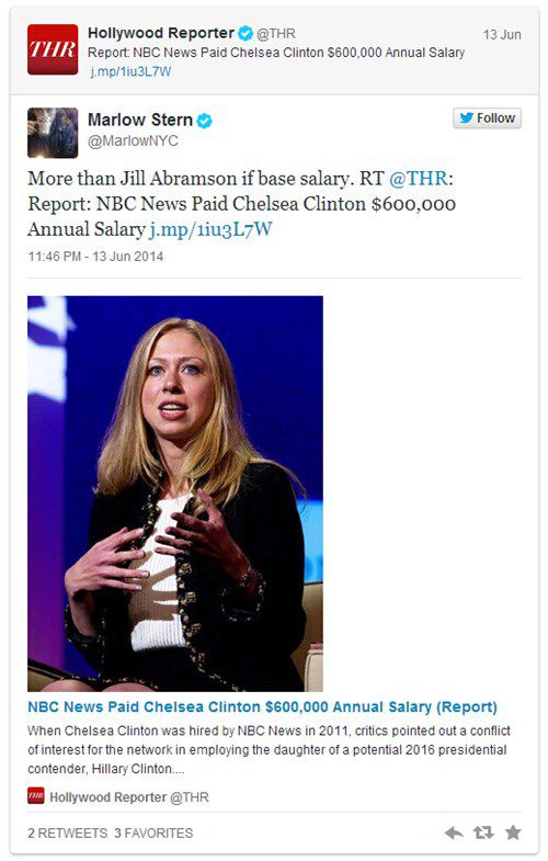 - 2014-06-16克林顿女儿天价记者薪酬遭媒体吐槽