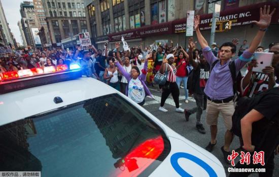 当地时间8月14日,美国各地民众参加游行,抗议9日晚18岁黑人学生迈克尔.布朗被警察击毙。 中新网8月20日电 综合报道,美国密苏里州弗格森市警察枪杀黑人青年事件刚爆发新一轮冲突,该州圣路易市当地时间19日又传出警察开枪射杀男子的消息。 密苏里州圣路易市大都会区警察局局长达森在记者会和社交网站上证实了这起事件,称该男子在死前向警察挥舞刀子,没有警察受伤。达森称,警察在接获民众电话后,发现一名似乎非常激动的持刀男子,男子大声喊“现在就杀了我”,并向警察逼近。达森表示,两位警察担心自身安危,双双向嫌犯开枪,嫌犯被击毙。 据美国当地媒体报道,这名男子试图持刀抢劫一家便利商店。便利商店老板称与这名男子起了争执。警察接到电话后赶到,但是嫌犯拒绝放下武器。他试图攻击警察,而后遭到射杀。目前案件正在调查中,旁观者已用黄色胶带封锁了命案现场,有些人高呼弗格森市示威者的口号,“手已高举,不要开枪”。 本月9日,18岁黑人青年布朗因涉嫌偷盗被白人警官在弗格森市的街上射杀身亡,引发当地群众示威抗议。18日,弗格森警方向抗议人群动用了催泪瓦斯和闪光弹。美国密苏里州州长尼克松18日已下令在当地部署国民卫队,以“恢复和平与秩序”,他同时解除了当地的宵禁。奥巴马呼吁各方保持冷静,表示将派美国司法部长前往事发地。 |