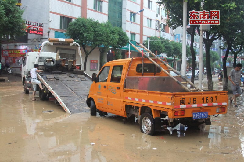 此前,电力、环卫等部门早就开始了救援行动。记者在文化宫门口见到了一辆被“救援”的救援车,这辆救援车是电力部门派出来抢修电力设施的。现场工作人员告诉记者:“我们这次是全员出动,在雨势最大的时候就已经在行动了,但是雨实在是太大了,导致我们的车辆出现故障,现在我们还要尽快赶去下一个抢修点。”