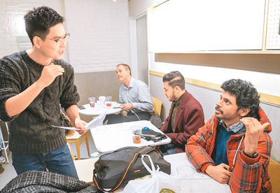 在纽约一家中餐厅,皇甫俊杰(左)正在教一位学生中文声调,这是他第一次举办线下“中文角”活动。 “‘闹钟’如果读成了‘孬种’,一音之差意义可差得多了;想搭讪,在中国得喊‘小哥哥、小姐姐’……”皇甫俊杰生动地讲述着他的中文教学案例。 在皇甫俊杰就读的纽约大学,他的中文课可谓小有名气,不少师生慕名而来。当地学习中文的旺盛需求让他萌生了一个念头:面向纽约市民众开设中文学习社群——“中文向上中文角”。在这里,既可以学习中文,也可以了解中国文化。与此同时,他和多家中餐厅合作,将语言和美食结合起来,让更多当地民众了解中国。 说到教中文,得从皇甫俊杰读本科说起。他本科毕业于浙江传媒学院播音主持专业,毕业后考入浙江电视台成为一名主持人,在周围亲戚朋友的眼中,这份工作很是理想。但皇甫俊杰有自己的想法:“我不想给自己的人生设限。同时,随着工作的深入,我觉得拥有国际化的视角很重要,也愿意给自己机会去探索这个世界。”功夫不负有心人,皇甫俊杰实现了自己的梦想,如愿到纽约大学读研。机缘巧合下,当外国朋友和老师得知皇甫俊杰是播音主持专业出身的,不少人表示想跟他学中文。 教标准的普通话 纽约大学的“自由表达”语言学习联盟是面向校内师生开设的语言学习课堂,只要有学习的意愿,多数情况下可以学到想学的语言。该课堂的教师岗位面向校内硕士研究生及以上在校生招聘。 得知这个消息,皇甫俊杰心动了。“说中文,这不就是我的专长吗?”他说,“当你来到非母语国家时,会有一种特别想介绍自己国家文化的冲动。” 虽然不是专业的对外汉语教师,但是皇甫俊杰在面试教师岗时,发挥自己的专业优势,将播音的发音方法展示给大家,这让面试官眼前一亮,职业主持人的专业表达素养,让他顺利地成为一名中文教师。 班上学生的中文水平并不相同,他们爱上中文的途径也各异:有的是因为在中国生活学习过而爱上中文;有的来自于华裔家庭,对中文有着天然的感情;有的仅仅是因为喜欢中国食物;还有的是因对中国历史、中国艺术感兴趣而学中文。 第一节课,皇甫俊杰就向大家展示了说标准中文的重要性。他告诉笔者,利用播音专业知识讲解牙齿、舌头的正确摆放位置,可以让外国学生快速掌握发音方法。为了让学生生动形象地体会中文发音,皇甫俊杰将发音技巧与现实例子结合起来,比如平声调就是看医生时张大嘴巴发出“啊”的声音。“外国人学中文注重‘听’和‘说’,而声调和特定的中文发音常常困扰中文学习者,如果能说一口标准的普通话,可以大大提升学生的学习信心。”皇甫俊杰说。 在教中文的过程中,皇甫俊杰强调以兴趣为基础,也常常纠正学生有些过时的中文表达。比如不少外国朋友会把“餐厅”称作“饭馆”,实际上,“餐厅”的表达更为常见。同时,他还会把目前流行的中文表达教给学生,并通过设计场景对话让大家沉浸于中文语境中,激发他们学中文以及灵活运用中文的兴趣。 创立中文社群 学员们对中文的热情是皇甫俊杰事先没料到的,这给了他很大的信心,也让他萌生新的想法:在中国有英语角,不如在国外也开设一个“中文角”,让更多的外国朋友加入进来,为更多喜欢中文的人提供学习渠道。 说干就干,皇甫俊杰先在国外的一个社交软件上建立了名为“中文向上中文角”的中文学习社群,面向纽约喜欢中文的朋友开放。每周都会举办线下中文学习活动。 皇甫俊杰与纽约的5家中餐厅建立合作,将线下中文学习活动放在中餐厅,把语言学习与美食结合起来。据他介绍,线下活动流程通常是先用中文做自我介绍,然后,餐厅大厨为大家介绍一道招牌菜和其中蕴含的中国饮食文化,最后大家一起品尝并且用中文交流感受。 “我也会结合美食教大家一些中文俗语、例句等,还会介绍一些相关的的中国礼仪。”皇甫俊杰说,“每次的活动名额都供不应求,虽然受疫情影响活动改到线上,但报名依然火爆。为了保证活动效果,每次活动限制在20人左右。” 从中文学习社群创立伊始,皇甫俊杰就将其定位为公益性质。“走出国门之后,觉得有传播中国文化的责任感,在活动中,也认识了很多热爱中国文化和愿意学习中文、了解中国的外国朋友。” 助力文化交流 据皇甫俊杰介绍,截至目前,“中文角”的会员人数超过2000人。他们来自世界不同国家,正是中文将不同国家、不同种族、不同肤色的人联系起来。参与者的职业也是五花八门,有哈佛大学的研究员、联合国官员、百老汇演员、厨师等,还有带着孩子一起参加社群活动的家长。“这是以中文学习为媒介的跨文化交流。”皇甫俊杰说。 在教授中文课的过程中,皇甫俊杰发现有的外国朋友对中国有一些误解。“在日常交流中,他们有时提出的一些问题让我哭笑不得。比如会问我:‘如果生了女孩,会被扔掉吗?’‘剩女’会不会被认为是‘失败者’……”皇甫俊杰说,“每当这时,我都会为他们耐心解答,因为只有了解,才能理解,才能达到真正的交流。” 在皇甫俊杰看来,这是一个双向的交流过程,他解答外国朋友的问题,帮助他们了解真正的中国,同时自己也了解了其他国家的文化。“这是非常好的良性互动,在这个过程中,我收获的是友谊、平等、真诚和尊重。”皇甫俊杰说。 |