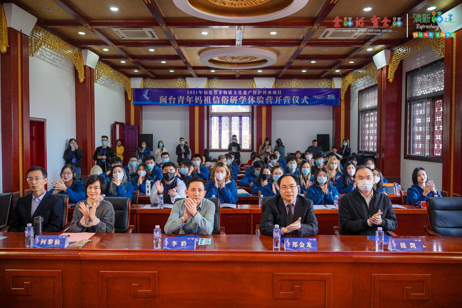 福建日报·新福建客户端 11月15日讯(记者 陈盛钟 实习生 陈淑滨 陈君妍)今天上午,2021年福建省非物质文化遗产保护传承项目--闽台青年妈祖信俗研学体验营开营仪式在莆田中华妈祖文化研究院举办。省文旅厅对外交流合作处(台港澳事务处)副处长李聆,省闽台文化交流中心主任郑金龙,莆田市文旅局副局长何黎仙,秀屿区文旅局局长钱凯,湄洲妈祖祖庙董事会副董事长吴国春,中华妈祖文化交流协会常务副秘书长周金琰,以及两岸学子近百人出席开营仪式。