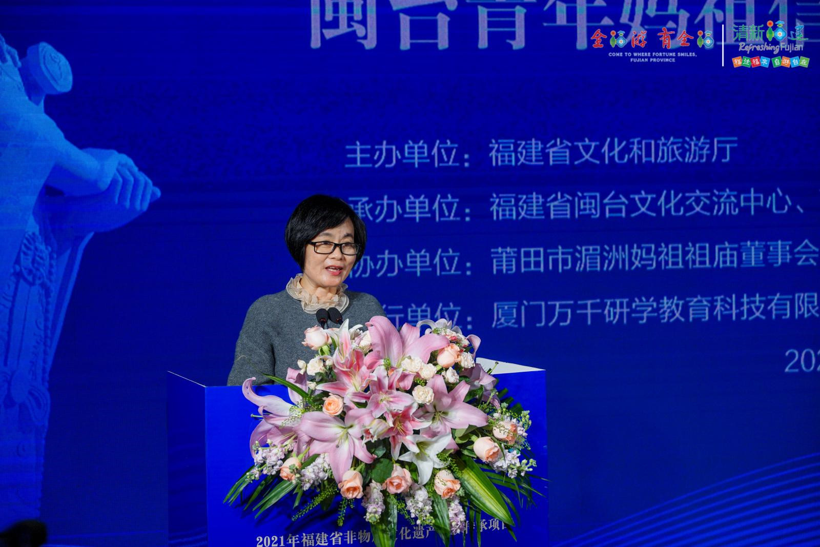 省闽台文化交流中心主任郑金龙在致辞中表示,妈祖文化是中华文化的瑰宝,是两岸同胞血脉相连的精神纽带,在促进两岸交流合作中发挥着重要作用。挖掘妈祖信俗文化的深刻内涵,着力发展妈祖文化文旅体验,对于传承中华优秀传统文化,促进海峡两岸文化认同和民族认同意义非凡。希望借此次闽台青年妈祖信俗研学营为契机,搭建两岸青年交流新平台,深化两岸文化交流合作与融合发展,促进两岸同胞心灵契合;希望闽台青年们在此次研学营中,积极探寻妈祖文化的精神内核和时代内涵,牢记妈祖文化所蕴含的中华传统美德,争当中华优秀传统文化的传承者。