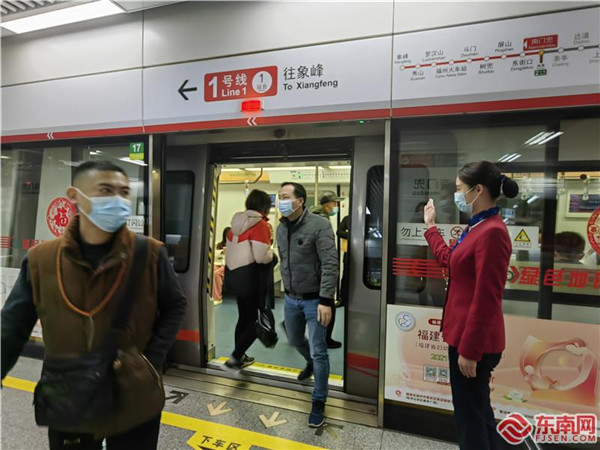 福州地铁一号线南门兜站志愿者正在引导乘客上下车(东南网记者 冯川叶 摄) 东南网1月17日讯(本网记者 冯川叶)今天开始,福州地铁将进入“春运”模式,全力保障2022年春运期间的地铁客流出行。自2022年1月17日起福州地铁1、2号线将执行新版列车运行图,行车间隔将进一步缩短,福州地铁行车间隔从“5”分时代跃入“4”分时代。 行车间隔调整 进入4分时代 1、2号线工作日早晚高峰期内的7:30~8:30、17:45~18:45时段,最小行车间隔由现状5分45秒缩短至4分50秒;工作日早晚高峰期内其他时段,行车间隔缩短至5分30秒;其余平峰时段,最小行车间隔由原7分50秒缩短至6分50秒。 各线路具体行车间隔如下:1号线工作日高峰期内的7:30~8:30、17:45~18:45时段,象峰﹣福州火车南站的行车间隔为4分50秒,福州火车南站﹣三江口的行车间隔为9分40秒。 工作日高峰期内的其他时段,象峰一福州火车南站的行车间隔为5分30秒,福州火车南站﹣三江口的行车间隔为11分钟。工作日平峰期及休息日、节假日期间,象峰﹣三江口的行车间隔为6分50秒。 2号线工作日高峰期内的7:30~8:30、17:45~18:45时段,苏洋﹣洋里的行车间隔为4分50秒。工作日高峰期内的其他时段,苏洋﹣洋里的行车间隔为5分30秒。工作日平峰期及休息日、节假日期间,苏洋﹣洋里的行车间隔为6分50秒。 这些贴心便民服务温暖旅途 记者了解到,春运期间,福州地铁在福州火车站、福州火车南站为特殊乘客(老弱病残孕)推出行李便民服务,并在全线25个站点均设有为残疾人提供的“爱心直通车”预约服务。在福州火车站、福州火车南站为出行乘客提供行李箱应急维修服务,并在1号线全线提供便民应急服务箱,箱内提供充电器、针线包、头绳等物品,供乘客应急使用。 此外,志愿者们还在福州火车站、福州火车南站的“春运服务台”。为来往乘客提供包括咨询、购票引导等服务。并在1号线车站组织小茉莉服务队流动性为市民提供出行服务,对车站的服务设施进行巡视,提升春运服务水平。同时,在福州地铁1号线福州火车站、树兜、茶亭、福州火车南站、梁厝站站厅非付费区创建“小茉莉”暖心驿站,为市民提供免费热水、歇脚等暖心服务。 |