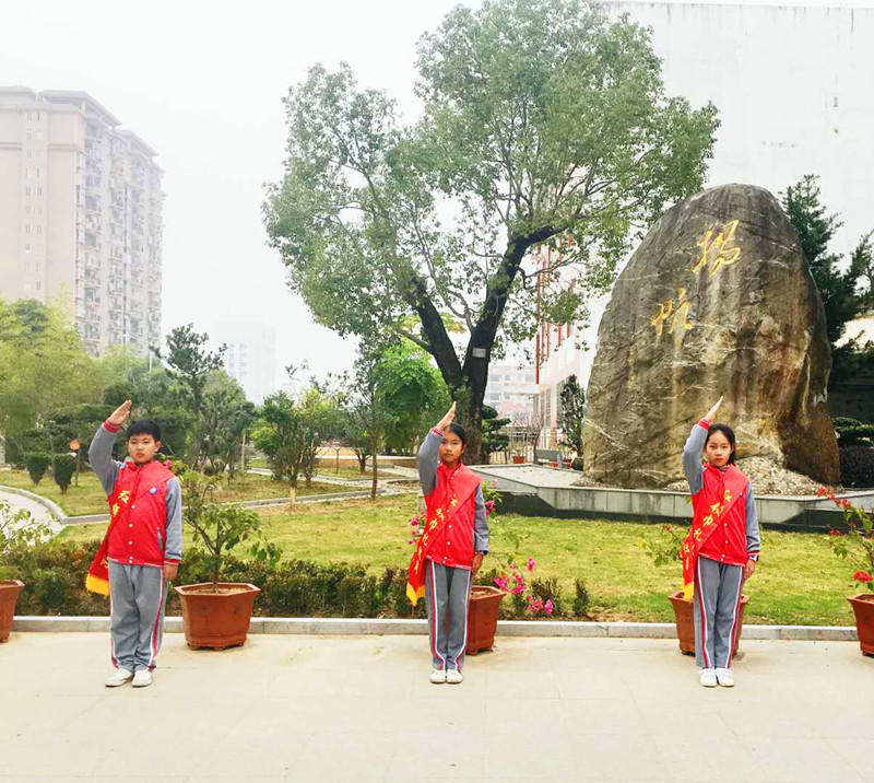 每天早晨,礼仪岗的队员们在校门口用微笑迎接着师生们的到来,向人们传递校园文明的信息;同时对全体少先队员的着装和红领巾佩戴进行文明督查,并负责劝阻接送孩子的家长进入校园。