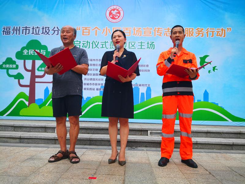 文明风7月15日讯(通讯员 林潇雨)习近平总书记指出,实行垃圾分类,关系广大人民群众生活环境,关系节约使用资源,也是社会文明水平的一个重要体现。7月15日上午,由福州市委文明办主办的福州市垃圾分类“百个小区百场宣传志愿服务行动”启动仪式鼓楼区主场在洪山镇国光社区举行。