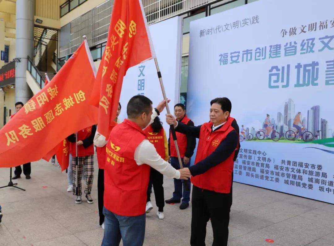市委书记叶其发为创城志愿服务队授旗 福安市委文明办供图