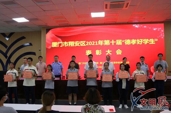 文明风6月22日讯(夏菁 童心悦)近日,2021年度翔安区第十届“德孝好学生”表彰大会在厦门市翔安区进修学校举行,共有103名学子受到表彰。