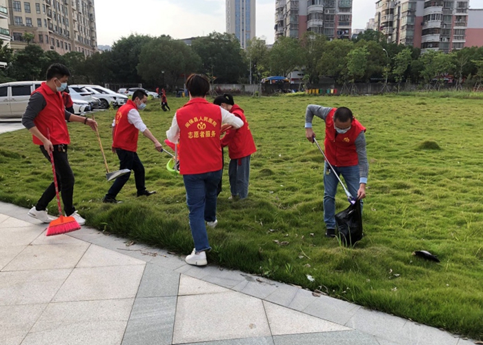 活动现场,志愿者们拿着扫帚、夹子、垃圾袋等清洁工具认真仔细的清理院内的绿化带的卫生死角,党员干部发扬不怕脏、不怕累的精神,用自己的实际行动对院内绿化带进行了一次“地毯式”的清理。