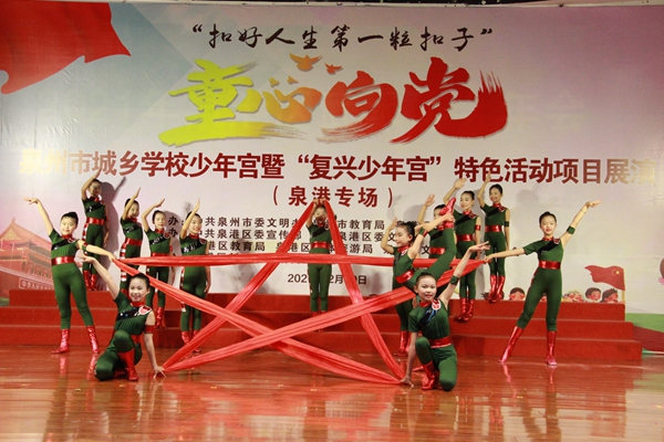 文明风1月7日讯(通讯员陈燕燕)1月6日,泉港区委宣传部、区委文明办、区教育局、区文体旅游局、区文联等单位在泉港区郭永钦艺术馆联合举办2021年泉州市城乡学校少年宫暨“复兴少年宫”特色活动项目展演(泉港专场)。