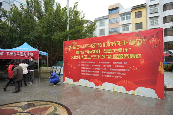 文明风1月27日讯1月25日,由延平区区新时代文明实践中心,区委宣传部,夏道镇党委、政府主办的2022年延平区“我们的节日•春节”暨“佳节尚文明 志愿关爱行”文化科技卫生“三下乡”志愿服务活动在夏道镇举办。承办单位有区委文明办、区委党校、区文联、区科协、区融媒体中心、区菁彩青少年发展中心、广电网络延平分公司、夏道镇新时代文明实践所等。