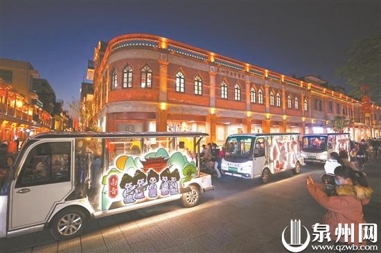 傍晚时分,30辆载着古城志愿者的新装“小白”,从东亚之窗文化广场出发,分3条线路沿着南俊北路、北门街、新华路南下,抵达终点天后宫广场。其中,北门街—中山北路—中山中路主路线由10辆全彩灯光车组成,这些灯光车车身有核心价值观主题展板、核心价值观花灯等同步主题灯光秀展览。古城志愿者还沿途展示了泉州非遗的风采。值得一提的是,30辆“小白”上挂有约150盏花灯,其中不少由市民创作。活动现场,道德模范、文明家庭、志愿者代表向公交车司机赠送元宵圆,鲤城区文艺志愿服务队表演文艺快闪……