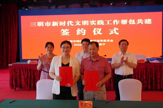 会上,泰宁县、沙县区新时代文明实践中心,永安市槐南镇新时代文明实践所,三元区白沙街道群二社区、将乐县高唐镇常口村新时代文明实践站,市文旅局、市农业农村局作了工作交流;沙县区与三元区和尤溪县、泰宁县与将乐县和建宁县就开展新时代文明实践工作帮包共建签约,三明市中级人民法院与泰宁县新时代文明实践中心、泰宁县烟草专卖局(分公司)与泰宁县下渠镇新时代文明实践所就开展新时代文明实践工作结对共建签约。