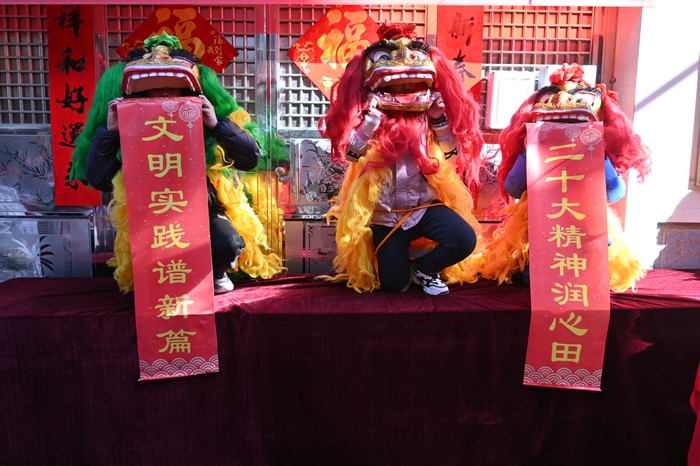 随后,为进一步让群众直观感受传统文化魅力,在志愿者们的协助下,130名群众依次体验了北狮魅力。