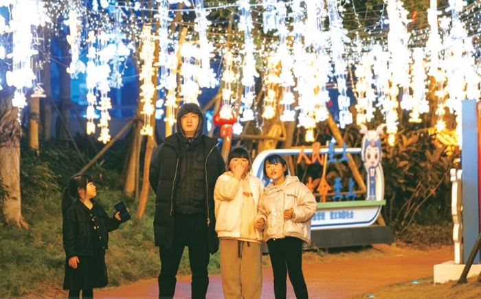 “我喜欢这句李白的‘仰天大笑出门去,我辈岂是蓬蒿人’,新年期望来一场出走就走的旅行,像李白一样潇洒”……现场,不少市民与自己喜欢的诗词灯串合影打卡,与同行的家人朋友,分享着彼此的新年愿望。