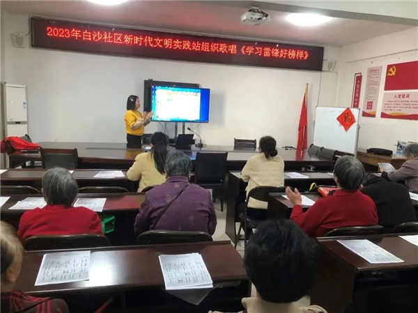 白沙街道白沙社区新时代文明实践站组织歌唱《学习雷锋好榜样》。