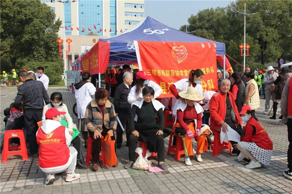 尤溪县新时代文明实践中心志愿者开展爱心义卖、盲人按摩、政策宣传、科学普及等多种志愿服务活动。