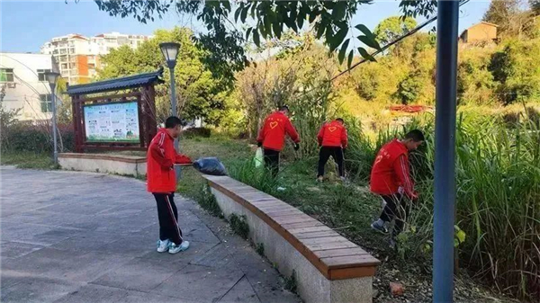 三明六中组织师生参加瑞云社区开展的“认领一块绿地”志愿服务活动,清理陈大镇禁毒主题公园垃圾和杂草,清洁公共设施。