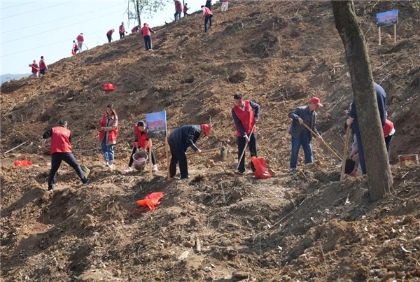 活动现场,大家热情洋溢,干劲十足,搬树苗、栽树、填土、浇水、覆土,经过众人齐心协力栽种,一排排无患子、黄山栾树树苗在三月早春里迎风挺立,为这个春天增添了新的生机和活力。