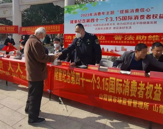 3.15期间,县市场监管局各市场监管所联合各镇有关部门,积极采取现场咨询、入户宣讲、送法下乡、食品快检等灵活多样的宣传方式,多渠道、多维度、多形式宣传年度主题重要意义及消费维权法律法规,推动全社会进一步形成消费安全共识。