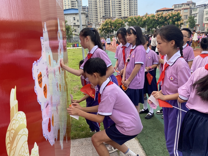 据悉,此次活动由宁化县新时代文明实践中心、县委文明办、县教育局、团县委、妇联、关工委联合举办。国庆前后,各学校还将持续开展以“向国旗敬礼 为祖国庆生”主题的绘画、手抄报、书法等系列活动,引导和激励未成年人礼敬国旗、爱国立志、奋斗追梦。此次庆国庆系列活动的开展,不仅增强了学生们的爱国情感,还让学生们用自己的方式,为祖国送上了最真挚的祝福。(宁化县委文明办 张美芹)
