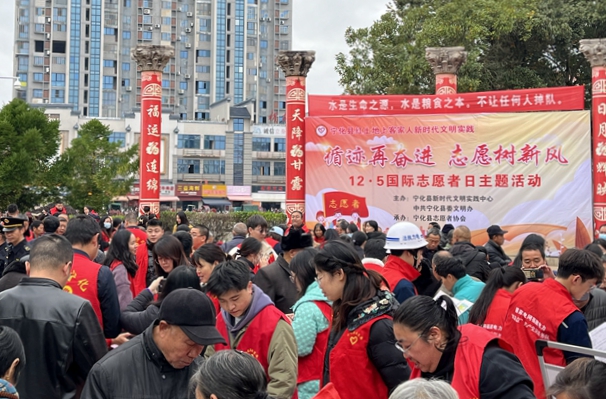 文明风12月5日讯 为纪念第38个“国际志愿者日”, 弘扬“奉献、友爱、互助、进步”的志愿精神, 12月5日,宁化县新时代文明实践中心在翠园广场组织开展“循迹再奋进·树新风扬新貌”“12·5”国际志愿者日集中宣传活动,宁化县委文明办、县检察院、司法局、县供电公司等32支志愿服务队近90名志愿者参加。
